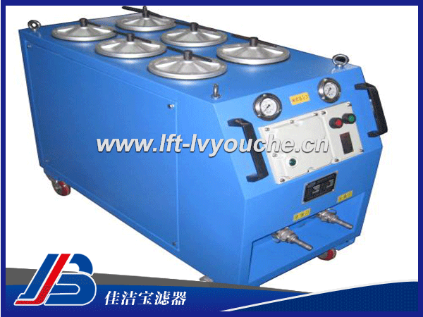 該過濾機由獨立油泵,真空表,壓力表,及多個過濾濾筒并聯(lián)組成,吸油口粗過濾器保護油泵并延長主過濾器使用壽命。能連續(xù)不斷的進行油液凈化,將油液中的污染顆粒和水分去除,過濾精度可達NAS1638-3級。